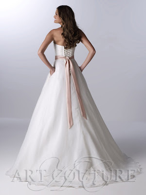 Wedding dresses that hark back to bygone eras of Hollywood glamour, vintage styling in fantastic laces or taffetas; Art Couture wedding gowns are always different but always perfect. Giant roses embellish simple wedding gowns or luxurious crystal highlight fantastic cuts to flatter your figure and make you look gorgeous in your Art Couture wedding gown.